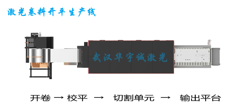 整套采用光纖激光切割技術(shù)的開卷落料生產(chǎn)設(shè)備,由上料臺車、開卷機、校平機、伺服送料機、激光切割裝置、切割平臺、碼垛裝置、廢料處理系統(tǒng)、液壓氣動系統(tǒng)及電氣控制系統(tǒng)組成。